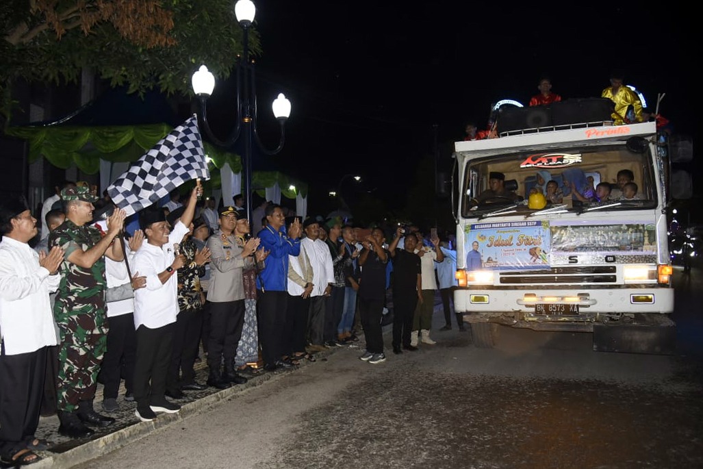 WARTATERKINI.ID | TAPTENG – Bupati Tapanuli Tengah Masinton Pasaribu bersama Wakil Bupati Tapteng, Mahmud Efendi beserta Forkopimda Tapanuli Tengah melepas Pawai Takbiran dalam rangka menyambut Hari Raya Idul Fitri 1 Syawal 1446 H/2025M, dilaksanakan di depan Masjid Agung Al- Muslimin Pandan, Minggu (30/03/2025) malam.