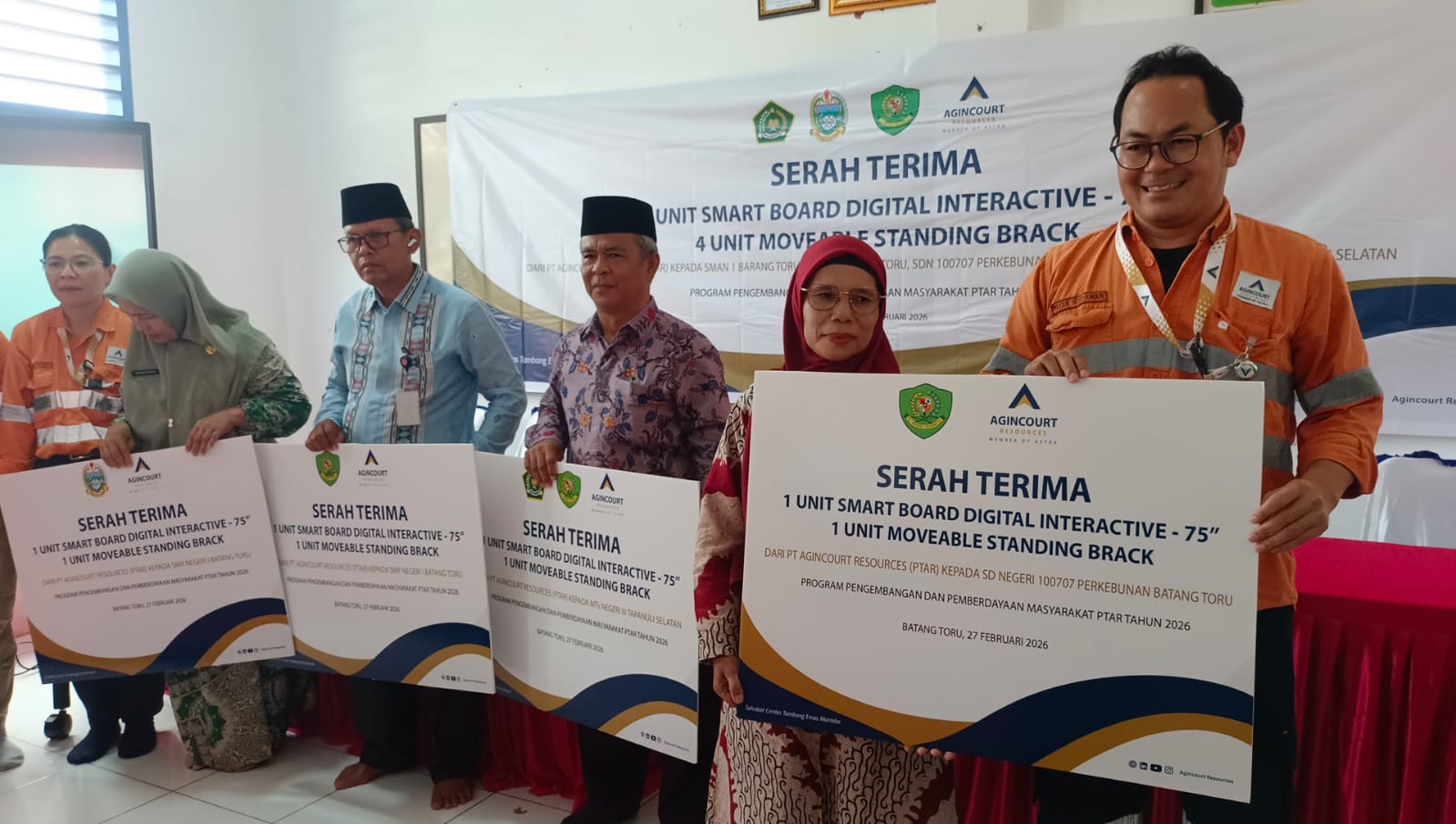 WARTATERKINI.ID | BATANG TORU – Dalam upaya meningkatkan mutu pendidikan di era digitalisasi, Tambang Emas Martabe yang dikelola oleh PT Agincourt Resources (PTAR) menyerahkan empat unit smart board kepada empat sekolah di Kecamatan Batang Toru, Kabupaten Tapanuli Selatan, Jumat (27/2/2026) pagi.