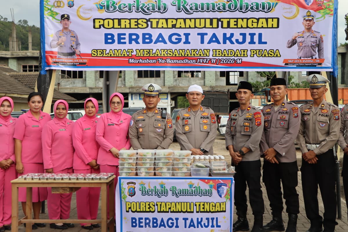 WARTATERKINI.ID | TAPANULI TENGAH – Dalam semangat berbagi di bulan suci Ramadan, Kepolisian Resor (Polres) Tapanuli Tengah menggelar aksi simpatik dengan membagikan ratusan paket takjil kepada masyarakat dan pengendara yang melintas di Jalan Sibolga-P. Sidempuan, tepatnya di Simpang DPRD Pandan, Kecamatan Pandan, Kabupaten Tapanuli Tengah. Selasa (3/3/2026) sore.